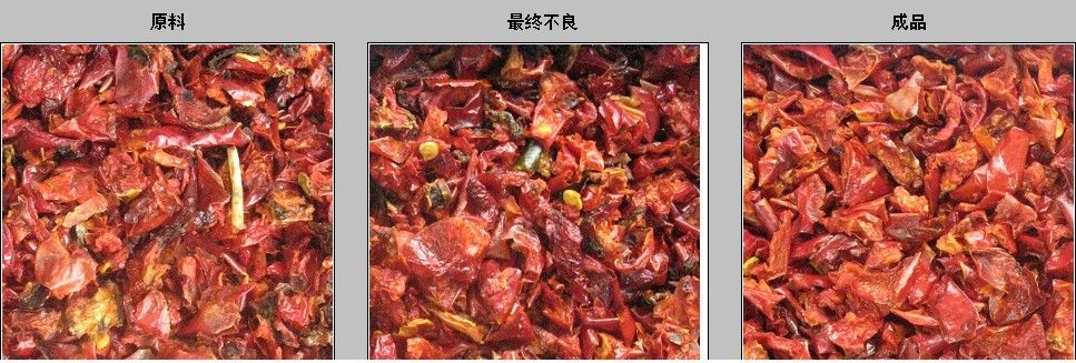 Вениао Чили Цветосортировщик, современное изобретение, использует передовую оптическую технологию сортировки.и даже малейшие изменения цвета в ваших чили-продуктовЭта машина точно отделяет от партии окрашенные, поврежденные или больные перец, гарантируя, что только самые лучшие продукты переходят к дальнейшей обработке или упаковке.